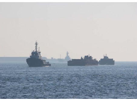 Barge with 4 ship blocks towed Busan to Niigata in 3 days by 2,000hp class tug
